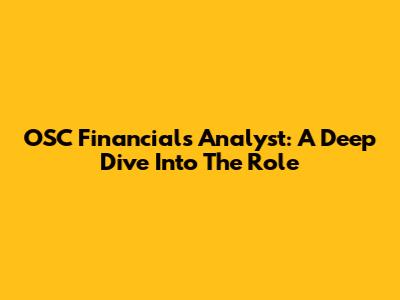 OSC Financials Analyst: A Deep Dive Into The Role