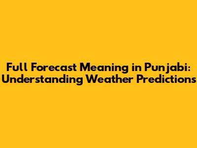 Hey guys! Ever wondered what a “full forecast” really means, especially when you need it in Punjabi? Understanding weather predictions is super important, whether you’re planning a wedding, a farming schedule, or just a day out with your family. Let’s dive deep into understanding weather forecasts and how to interpret them accurately in Punjabi.