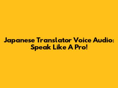 Japanese Translator Voice Audio: Speak Like A Pro!