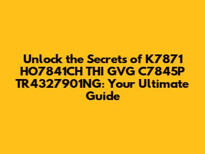 Why K7871 HO7841CH THI GVG C7845P TR4327901NG is a Game-Changer for Your Operations