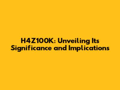 Decoding H4Z100K: Understanding the Basics
