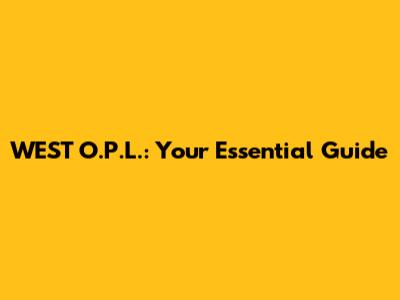 WEST O.P.L.: Your Essential Guide
