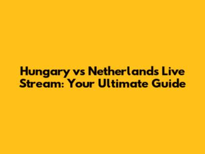 Why You Can't Miss This Hungary vs Netherlands Showdown