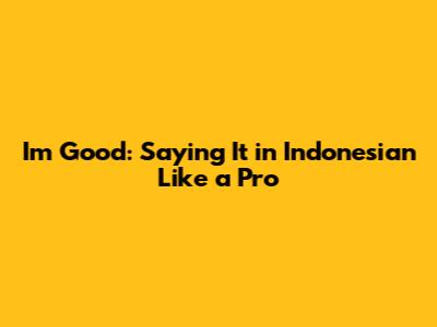 Hey guys! Ever found yourself traveling in Indonesia and needing to tell someone you're doing just fine? Knowing how to say "I'm good" in Indonesian can be super handy. Not only does it help you communicate your well-being, but it also shows a bit of cultural awareness and respect. So, let's dive into the different ways you can express that you're feeling good in Bahasa Indonesia. Trust me, it's easier than you think, and you'll be impressing locals in no time!