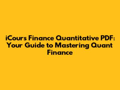 Are you ready to dive into the exciting world of quantitative finance? Guys, whether you're a student, a seasoned professional, or just someone curious about the field, understanding the core concepts and having access to quality resources is absolutely crucial. That's where the iCours Finance Quantitative PDF comes in. This comprehensive guide is designed to provide you with a solid foundation in quantitative finance, covering everything from the basic principles to more advanced techniques. So, grab your coffee (or tea!), get comfortable, and let's explore what makes this PDF such a valuable resource.