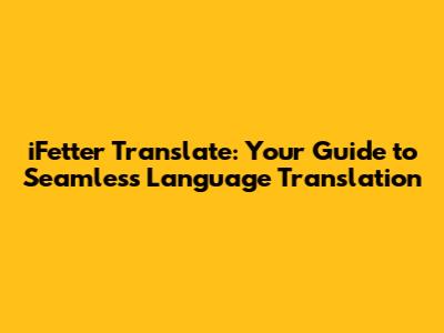 Hey guys, ever found yourself in a situation where you needed to translate something, but the tools available were just... meh? Well, get ready, because we're diving deep into the world of iFetter Translate. This isn't just another translation app; it's designed to make your life easier when you're dealing with different languages. Whether you're a globetrotter planning your next adventure, a business professional looking to expand your reach, or just someone curious about other cultures, having a reliable translation tool is an absolute game-changer. In this article, we're going to break down exactly what iFetter Translate is, how it works, and why it might just become your new favorite digital companion for all things language-related. We'll explore its features, benefits, and some tips on how to get the most out of it. So, grab a coffee, get comfy, and let's unravel the magic of iFetter Translate together!