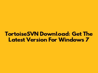 TortoiseSVN Download: Get The Latest Version For Windows 7