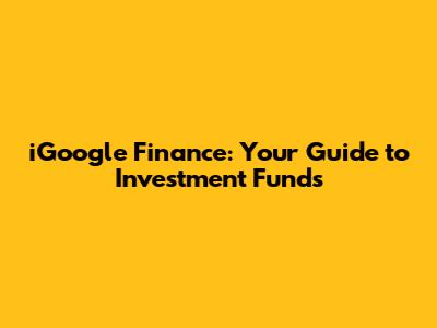 Hey guys! Ever felt like the world of investment funds is a confusing maze? Well, you're not alone! Navigating the financial landscape can be tricky, but understanding investment funds is a crucial step towards securing your financial future. Today, we're diving deep into the world of iGoogle Finance and how it can help you make informed decisions about investment funds. Let's break down the basics, explore the different types of funds, and discuss how to use iGoogle Finance to your advantage. Get ready to unlock the secrets of smart investing!
