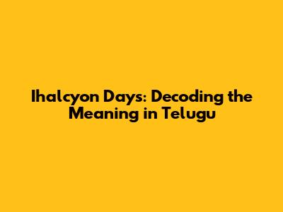Hey guys! Ever stumbled upon the phrase "ihalcyon days" and wondered what it actually means, especially when you're trying to figure it out in Telugu? Well, you're in the right place! We're going to break down the meaning of "ihalcyon days," explore how it's used, and even dive into some cool Telugu equivalents. So, let's get started and unravel this fascinating phrase!
