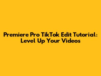 Premiere Pro TikTok Edit Tutorial: Level Up Your Videos