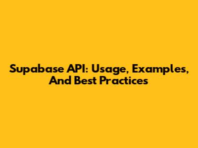 Supabase API: Usage, Examples, And Best Practices