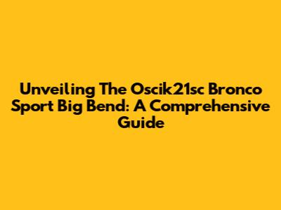 Unveiling The Oscik21sc Bronco Sport Big Bend: A Comprehensive Guide