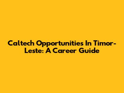 Caltech Opportunities In Timor-Leste: A Career Guide