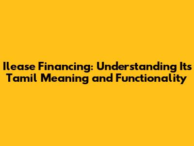 What is Ilease Financing? - Its Tamil Meaning