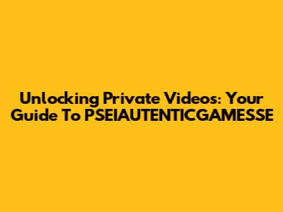 Unlocking Private Videos: Your Guide To PSEIAUTENTICGAMESSE