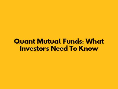Quant Mutual Funds: What Investors Need To Know