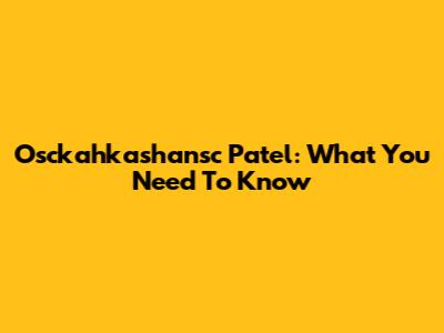Osckahkashansc Patel: What You Need To Know