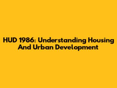 HUD 1986: Understanding Housing And Urban Development