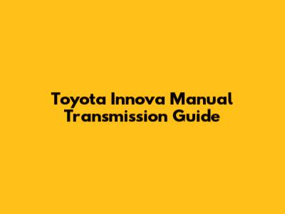 Toyota Innova Manual Transmission Guide
