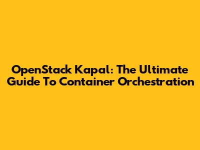 OpenStack Kapal: The Ultimate Guide To Container Orchestration