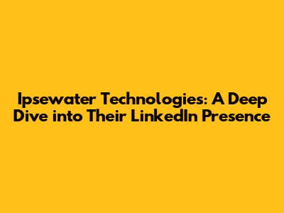 Hey guys! Let's dive into the digital realm and explore Ipsewater Technologies' presence on LinkedIn. We'll unravel their strategies, dissect their content, and see how they're leveraging the platform to connect with professionals, build their brand, and potentially, well, you know, score some sweet deals. If you're curious about how companies are using LinkedIn, or maybe you're looking to up your own game, you've come to the right place. We'll examine the ins and outs of Ipsewater's approach, what they're doing right, and maybe, just maybe, where they could tweak things. So, grab your coffee (or your beverage of choice), get comfy, and let's get started.