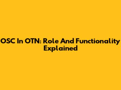 OSC In OTN: Role And Functionality Explained
