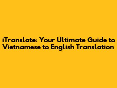 Hey guys! Ever found yourself staring at some Vietnamese text, completely lost? Or maybe you're trying to communicate with someone who speaks Vietnamese? Well, you're in luck! Today, we're diving deep into the world of iTranslate, a fantastic tool that helps you effortlessly translate from Tiếng Việt to English and vice-versa. Whether you're a seasoned traveler, a language enthusiast, or just trying to understand a menu, iTranslate can be your best friend. We'll explore what makes iTranslate tick, how to use it effectively, and even some tips and tricks to get the most out of this awesome translation app. So, buckle up, because we're about to embark on a language-learning adventure!