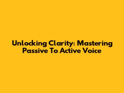 Unlocking Clarity: Mastering Passive To Active Voice