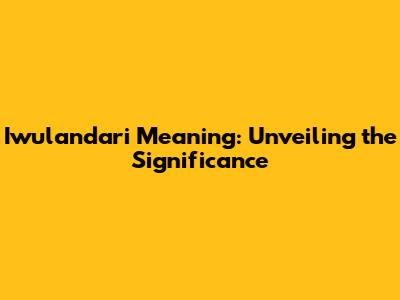 Iwulandari Meaning: Unveiling The Significance