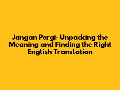 Tips for Perfecting Your Translation of "Jangan Pergi"