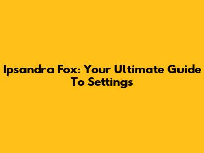 Ipsandra Fox: Your Ultimate Guide To Settings