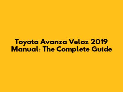 Toyota Avanza Veloz 2019 Manual: The Complete Guide