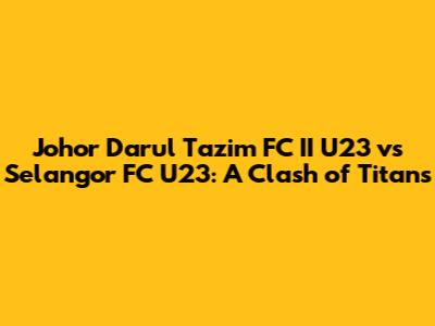 Hey guys! Get ready for a thrilling showdown! We're diving deep into the upcoming match between Johor Darul Ta'zim FC II U23 and Selangor FC U23. This isn't just any game; it's a battle of rising stars, a clash of tactical masterminds, and a potential turning point for both teams in their respective campaigns. We'll break down everything you need to know, from the key players to the expected strategies, and give you a solid prediction of how it might all play out. So, buckle up, football fanatics, because we are about to enter the thrilling world of Malaysian football! This match promises excitement, talent, and plenty of drama. Let's get started and explore the potential narratives and tactical battles that await us. Expect nothing less than a display of raw talent and strategic brilliance, showcasing the future of Malaysian football. The Johor Darul Ta'zim II U23 and Selangor FC U23 teams are both known for their vibrant youth development programs, making this match a prime opportunity to witness the emergence of future footballing stars. This game is also a test of each team’s coaching staff, who will need to strategize to exploit the opponents’ weaknesses while maximizing their team's strengths. Ultimately, the outcome could significantly influence the teams' standings, making every goal and every play crucial. This game will showcase not only individual talent but also the effectiveness of team strategies and the resilience of young players under pressure.