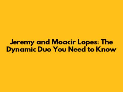 Have you ever heard of Jeremy and Moacir Lopes? If not, guys, you're in for a treat! These two are making waves, and it's time we dive into who they are and what makes them so special. Let's get started and explore their backgrounds, achievements, and what they're up to now. Trust me; it's a story worth knowing!