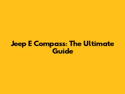 Jeep E Compass: The Ultimate Guide