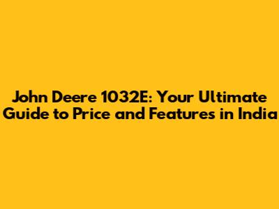 The John Deere 1032E Price in India: What to Expect