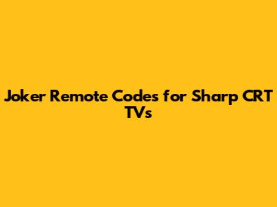 Finding the correct Joker remote codes for your Sharp CRT TV can be a bit of a challenge, but with patience and the right approach, you can get your universal remote working like a charm. Remember to consult the code list, try the auto-search function, and troubleshoot common issues. And if all else fails, don't be afraid to consider an alternative remote. With a little bit of effort, you'll be back to enjoying your favorite shows on your classic Sharp TV in no time! Good luck, and happy remote hunting!
