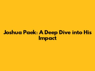 Hey everyone, let's talk about Joshua Paek today! You might have heard the name, or maybe you're just curious about who this guy is and what he's all about. Well, buckle up, because we're going to take a really good look at his journey, his accomplishments, and the significant impact he's made. It's not every day you come across individuals who leave such a distinct mark, and Joshua Paek is definitely one of those people. We'll be breaking down his career, exploring the key moments that defined his path, and understanding why his contributions matter. So, whether you're a longtime follower or a newcomer to his story, this is your chance to get the full picture. We'll dive deep into the nuances of his work, the challenges he's overcome, and the legacy he's building. Get ready to be informed and perhaps even inspired by the insights we uncover about Joshua Paek. This isn't just a biography; it's an exploration of influence and achievement in today's dynamic world. Let's get started on unraveling the compelling narrative of Joshua Paek and understanding the significance of his presence in his respective fields.