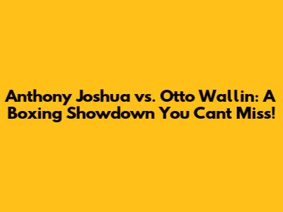 Hey fight fans, get ready! We're diving deep into the highly anticipated boxing match between Anthony Joshua and Otto Wallin. This is a clash of titans, a battle of wills, and a fight that promises fireworks. I'm here to give you the lowdown, from pre-fight analysis and predictions to the potential strategies both fighters might employ. We will look at what makes this fight so exciting, and explore what each boxer brings to the ring. Buckle up, because we're about to break down everything you need to know about Joshua vs. Wallin!
