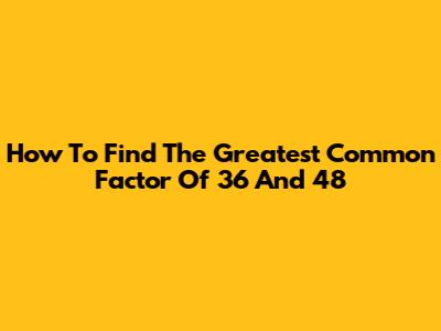 How To Find The Greatest Common Factor Of 36 And 48