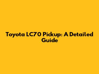 Toyota LC70 Pickup: A Detailed Guide