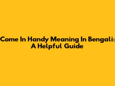Come In Handy Meaning In Bengali: A Helpful Guide