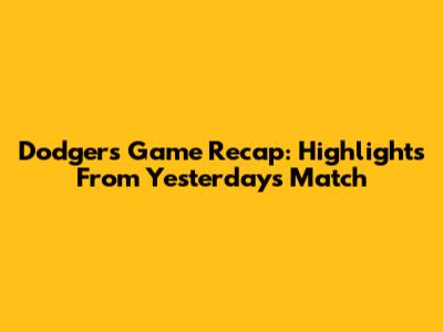 Dodgers Game Recap: Highlights From Yesterday's Match