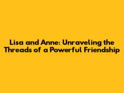 Hey guys! Let's dive into something super interesting today – the amazing friendship between Lisa and Anne. Seriously, their bond is something else, and it's totally worth exploring. We're going to dig deep, looking at their story, analyzing what makes their relationship so strong, and figuring out what lessons we can learn from it. Buckle up, because we're about to embark on a journey through the heart of a truly special friendship. This article is all about understanding the depth of their connection, the struggles they've overcome, and the unwavering support they've given each other. It’s a story about loyalty, growth, and the profound impact of having someone truly there for you. We will go through every aspect that makes this a friendship to remember. We'll look at the specific moments and experiences that have shaped their relationship. So, grab a coffee, get comfy, and let's unravel the secrets of Lisa and Anne's incredible bond. Understanding their relationship, how they navigate challenges, and how they celebrate each other's successes will allow us to see how much we should value friendship.