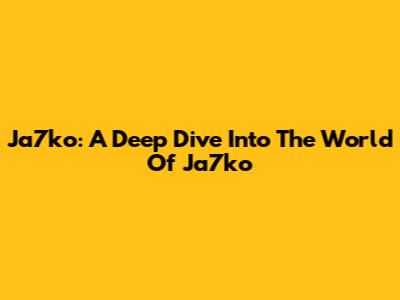 Ja7ko: A Deep Dive Into The World Of Ja7ko