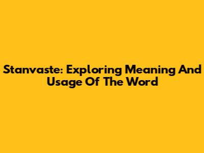 Stanvaste: Exploring Meaning And Usage Of The Word
