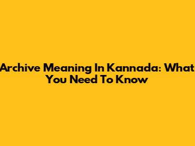 Archive Meaning In Kannada: What You Need To Know