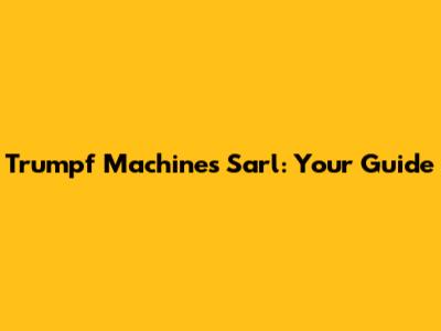 Trumpf Machines Sarl: Your Guide