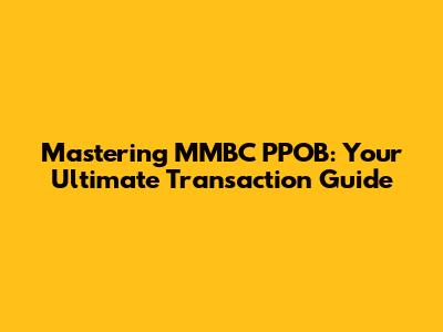 Mastering MMBC PPOB: Your Ultimate Transaction Guide