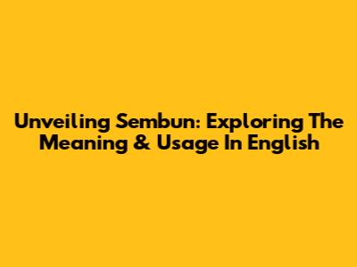 Unveiling Sembun: Exploring The Meaning & Usage In English